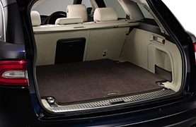 Luxusní kobercová rohož do zavazadlového prostoru s vlasem 2050 g/m2 v Truffle designu s vloženým logem Jaguar a lemováním z kůže Nubuck zajišťuje ochranu zavazadlového prostoru vozidla před znečištěním. Možná kombinace s kolejnicemi v zavazadlovém prostoru.